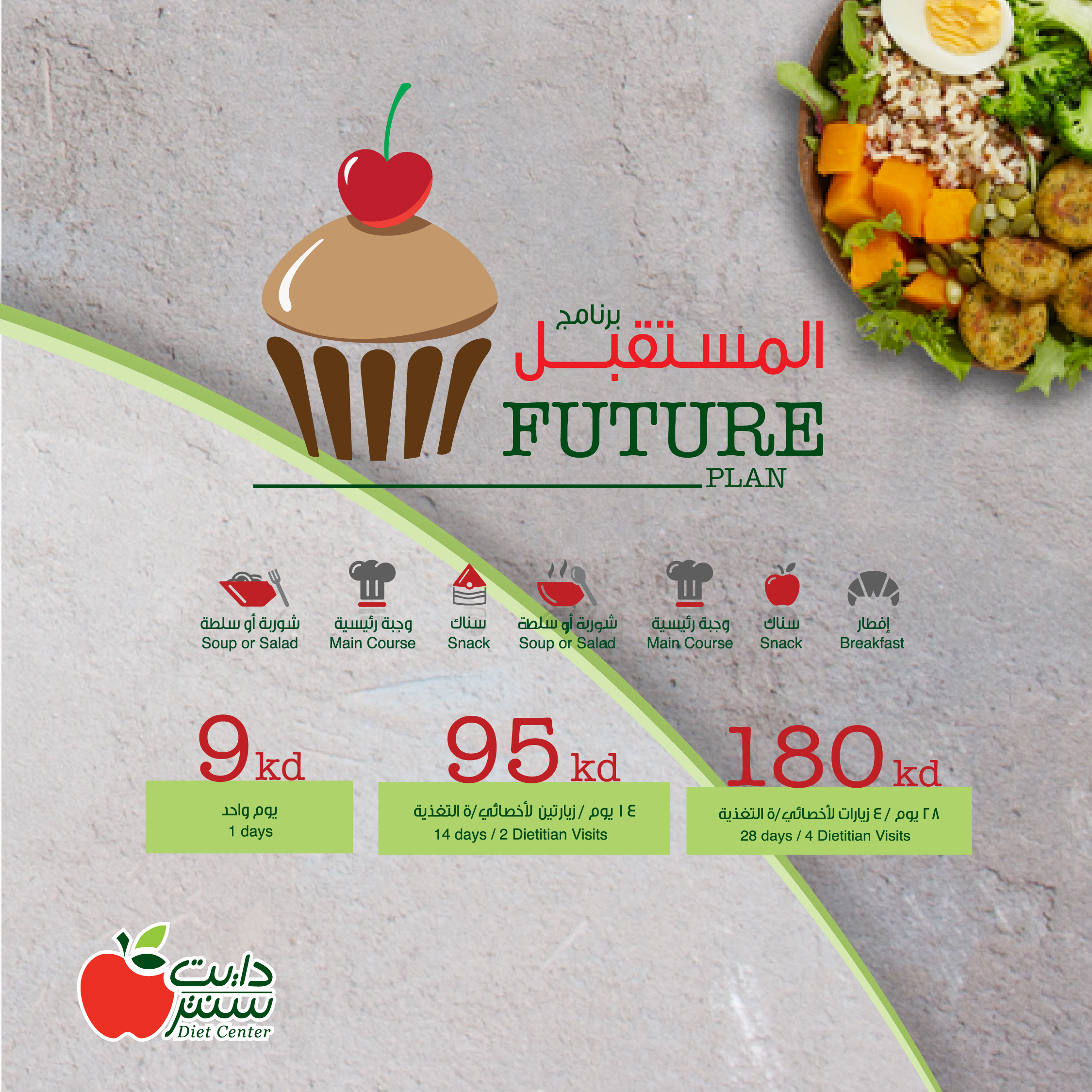 Diet Center is a well-established nutrition and healthy lifestyle brand in Kuwait, offering customized meal plans and diet programs tailored to individual health goals. The brand focuses on balanced nutrition, weight management, and promoting a healthier way of living.
